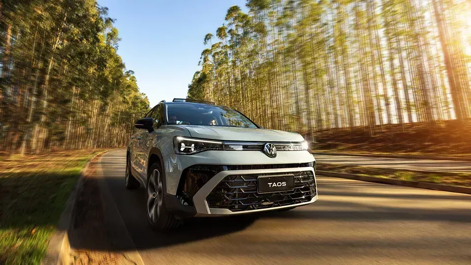 O motor 250 TSI, com 150 cv, do Novo Taos entrega respostas rápidas e uma condução segura, unindo potência e eficiência de forma precisa. A aceleração progressiva garante desempenho consistente e refinado em diferentes situações de uso.